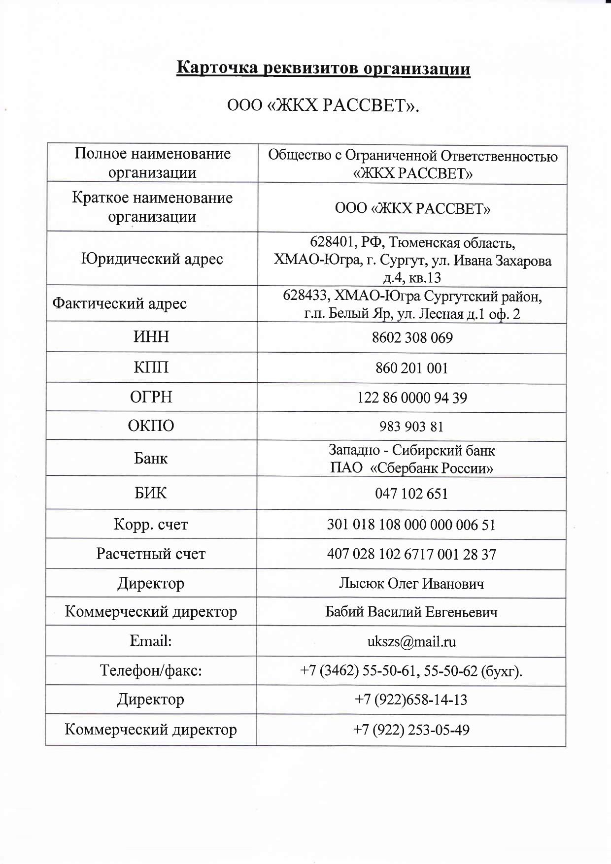 ООО "ЖКХ РАССВЕТ"